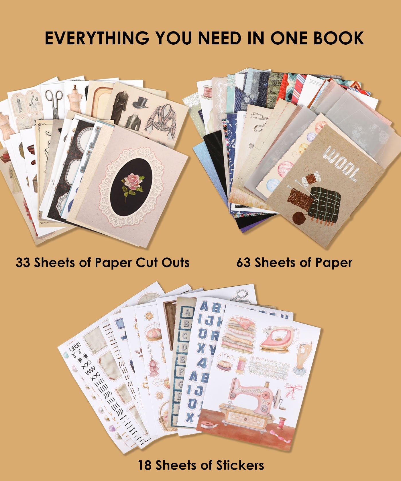 Each chapter unveils a unique treasury of textile-inspired materials, including exquisitely patterned papers, delicate lace-effect stickers, and specialty die-cuts, all meticulously selected for your creative journey.