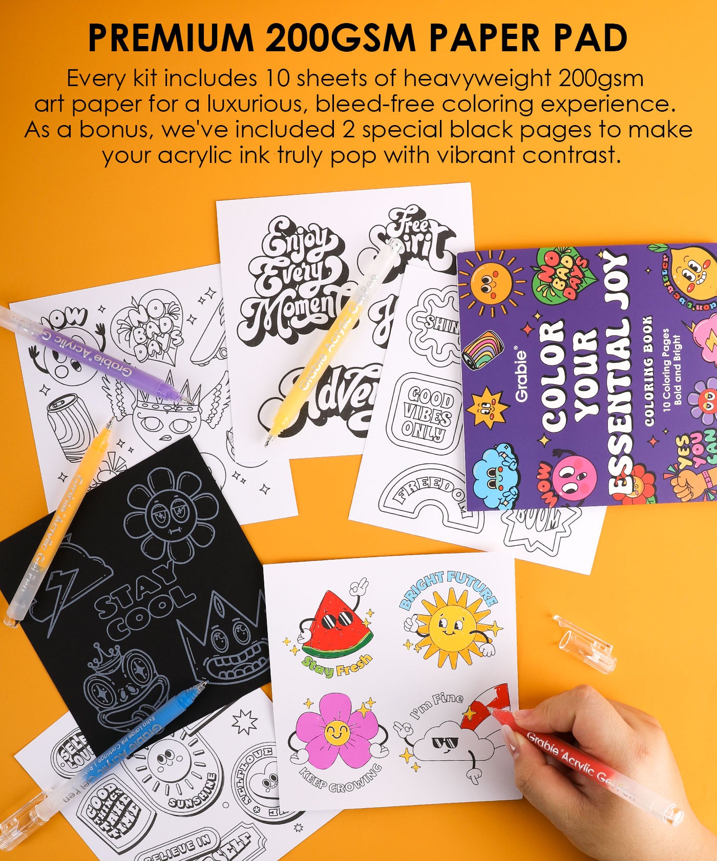 Unleash your creativity with the Grable Bold & Bright Coloring Kit! This collection is your all-in-one artistic adventure, combining smooth, vibrant acrylic gel pens with high-quality themed coloring books. Whether you are an experienced colorist or just starting out, this kit provides everything you need to transform your drawings, journals, and crafts into dazzling, colorful masterpieces. Get ready to experience true color with unmatched performance.