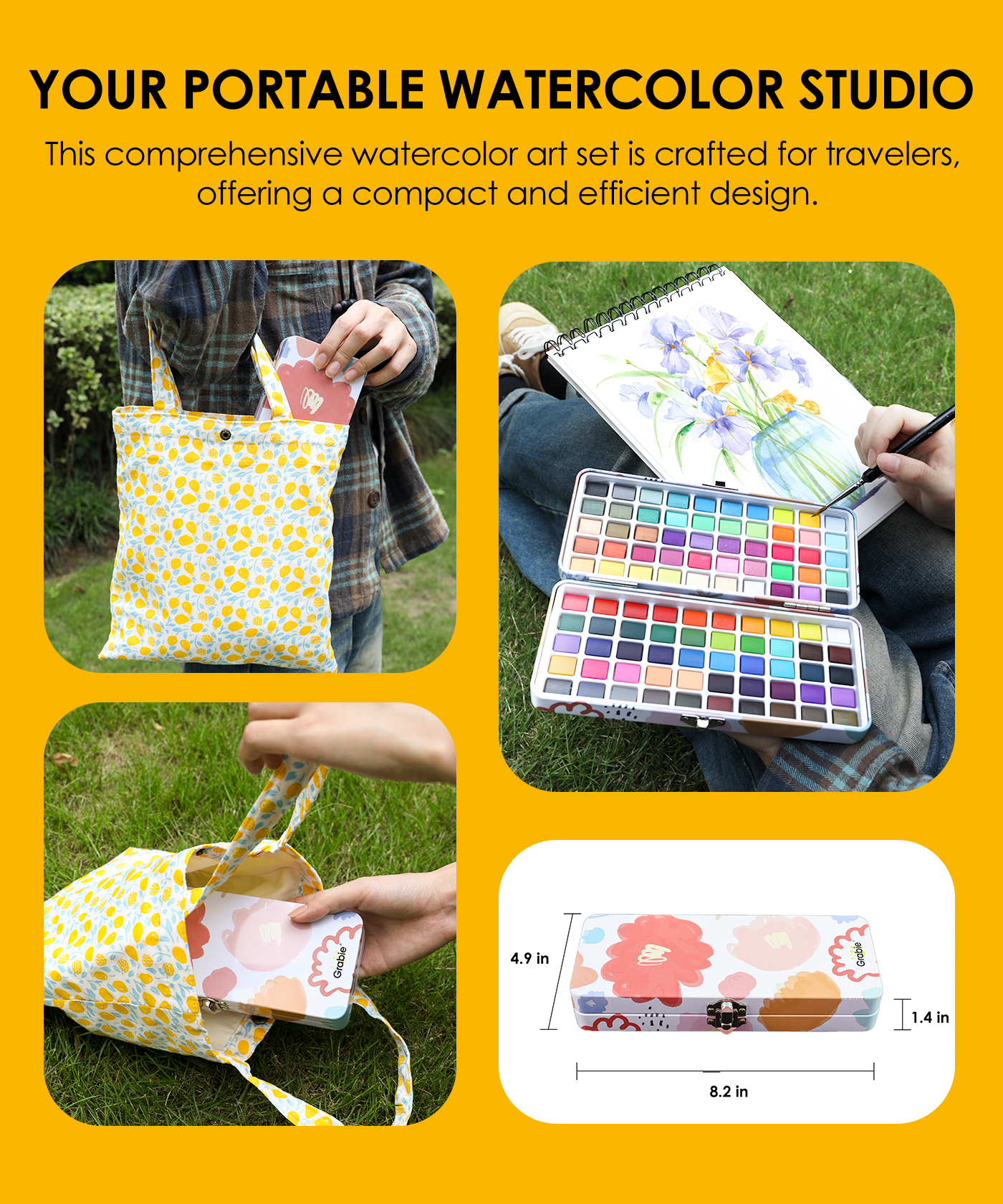 - PERFECT PORTABLE WATERCOLOR PAINT SET, CREAT ON THE GO: Ultimate travel watercolor set with a compact carrying box, size-8.19*4.93*1.38 in, item weight-14.9 oz, the sturdy metal case won't take up much space in your bag, lightweight and portable. Grabie watercolor paint set has been selected by lots of artists, travel, indoors, countryside, park, beach, garden and city, wherever they go, they can always enjoy the freedom of painting.
