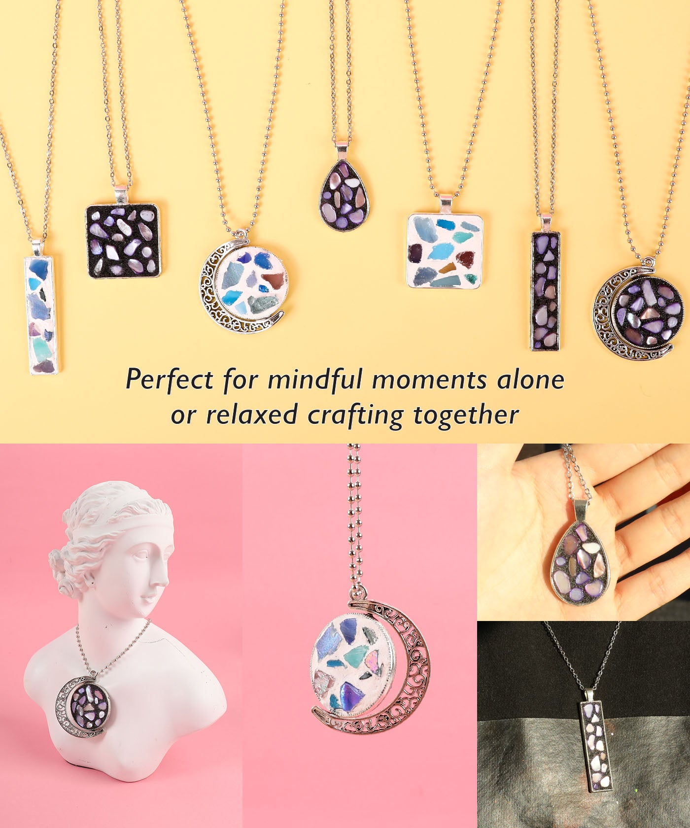 - SIMPLE STEPS, BEAUTIFUL RESULTS - Simple to make, beautiful to wear. Turn tiny shell chips into one-of-a-kind mosaic pendants. Just arrange, glue, and finish — no crafting experience needed. Each stone is hand-picked and placed by you, reflecting your personal touch. Designed by you, made to shine.
