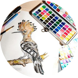 Grabie watercolors are made from a selection of modern high-quality pigments milled to perfection to offer optimal performance and control. Grabie uses a finely milled, high-concentration process making the solid watercolor paints durable and will not crack. These pans can meet the requirements of all artists providing the best "true to color" watercolor experience. The colors are bright, rich, transparent, soluble, easy to color, easy to blend, fade-resistant, and create endless colors when mixed together. The vibrant colors are incredibly pigmented, providing artists with rich color every time.