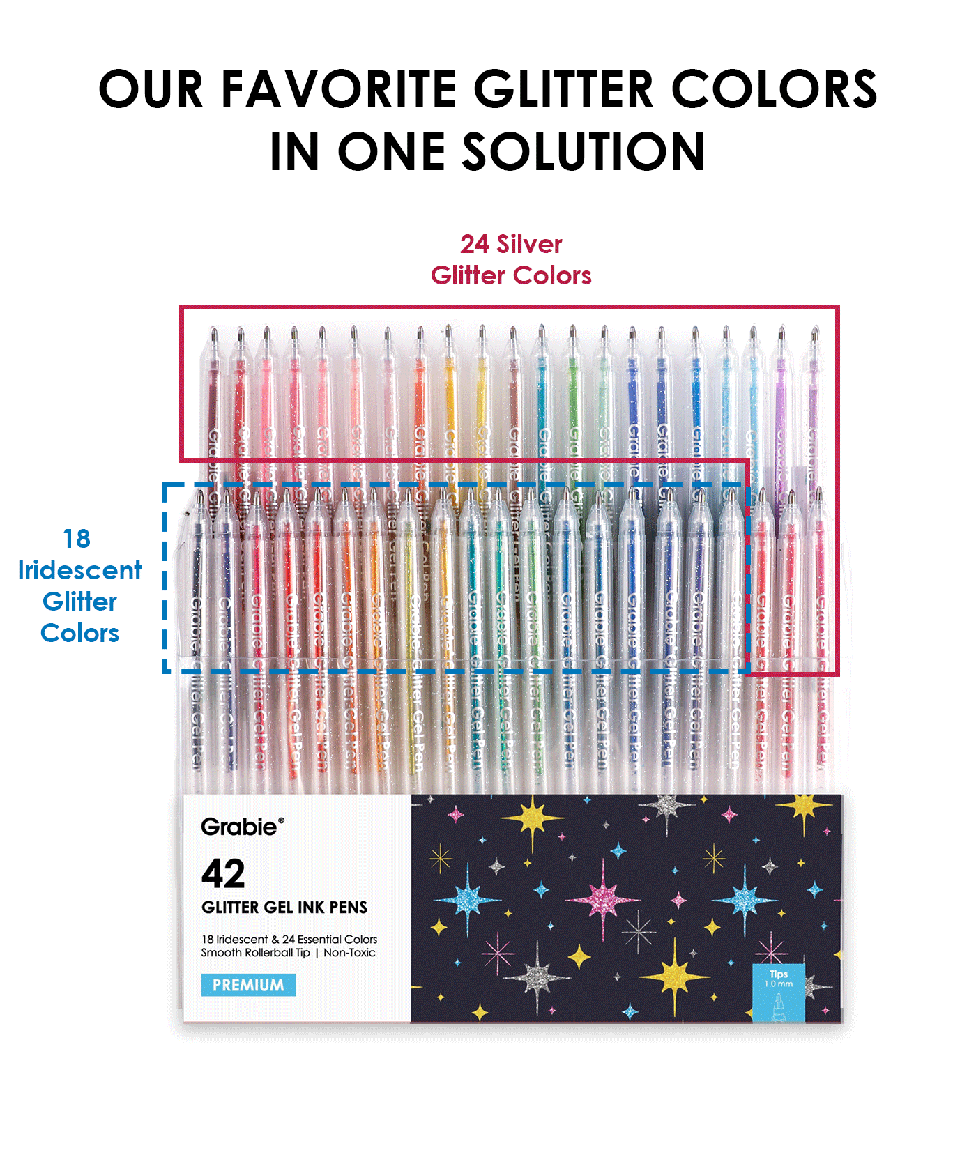 • VIBRANT & HIGH-SHIMMER GLITTER INK - Discover 42 unique and bold shades of glitter ink. Our new formula is specially designed to deliver popping, saturated colors and maximum sparkle, ensuring every line you create stands out vividly and dazzles the eye.