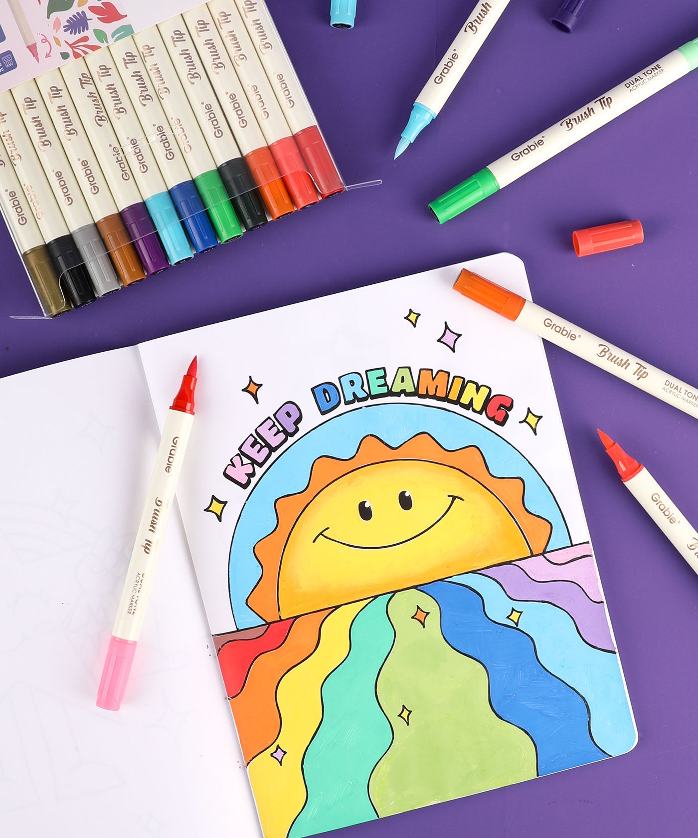 Experience the versatility and vibrancy of the Grabie 2-in-1 acrylic marker Set. With dual-color brush tips, this innovative design offers a wide range of colors in one convenient set. Crafted with premium acrylic paint, these markers are non-toxic, quick-drying, and perfect for any surface. Whether on paper, stone, glass, or beyond, Grabie markers deliver bold, vivid colors and superior performance with every stroke.