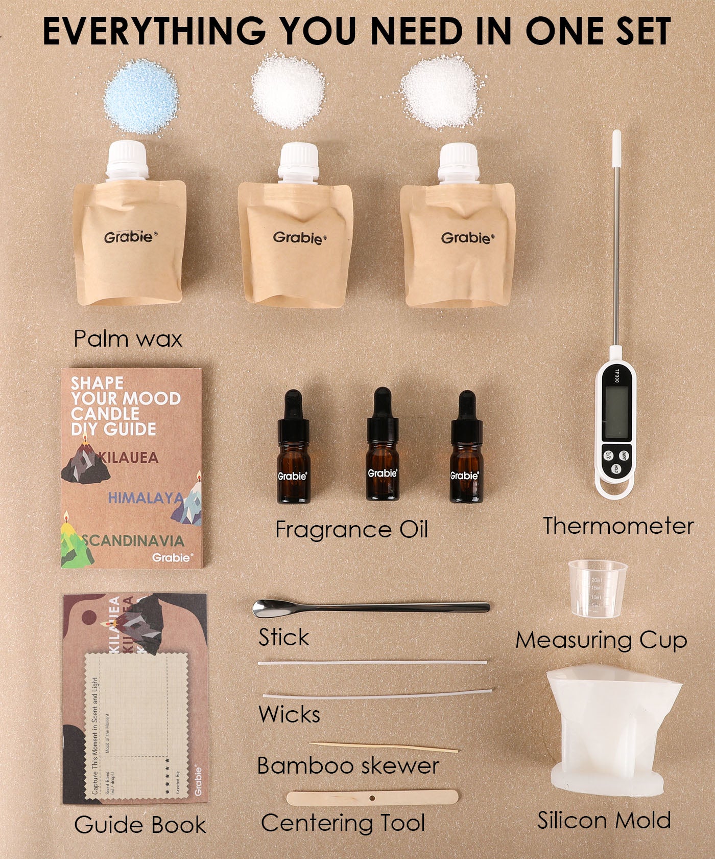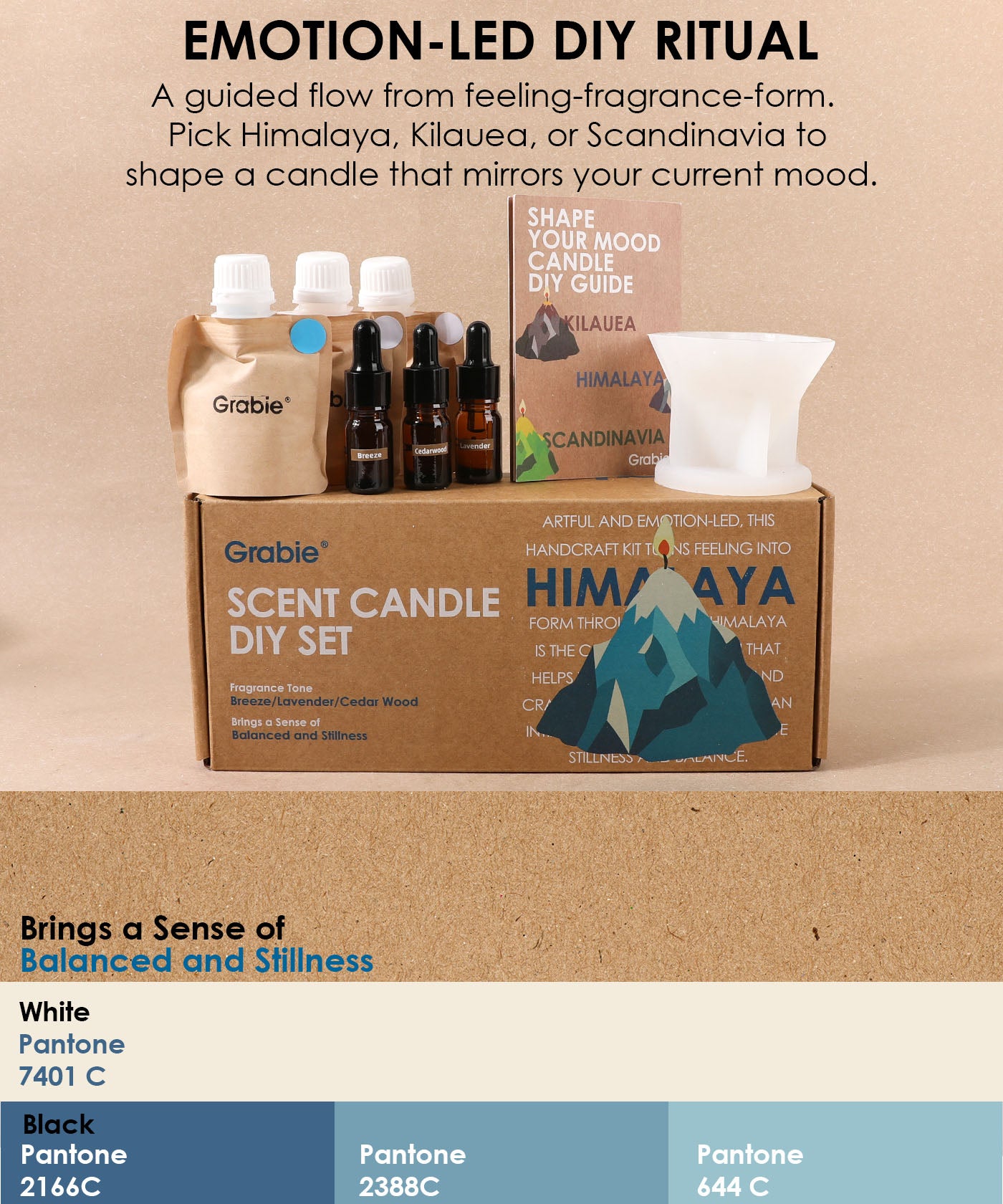 Grabie Emotion Mountain Candle DIY Set — Mood-Led Mountain Candle Kit with Plant-Based Wax, Curated Fragrance Oils, Silicone Mold & Full Tools — Shape Your Feelings into a Tiny Mountain.