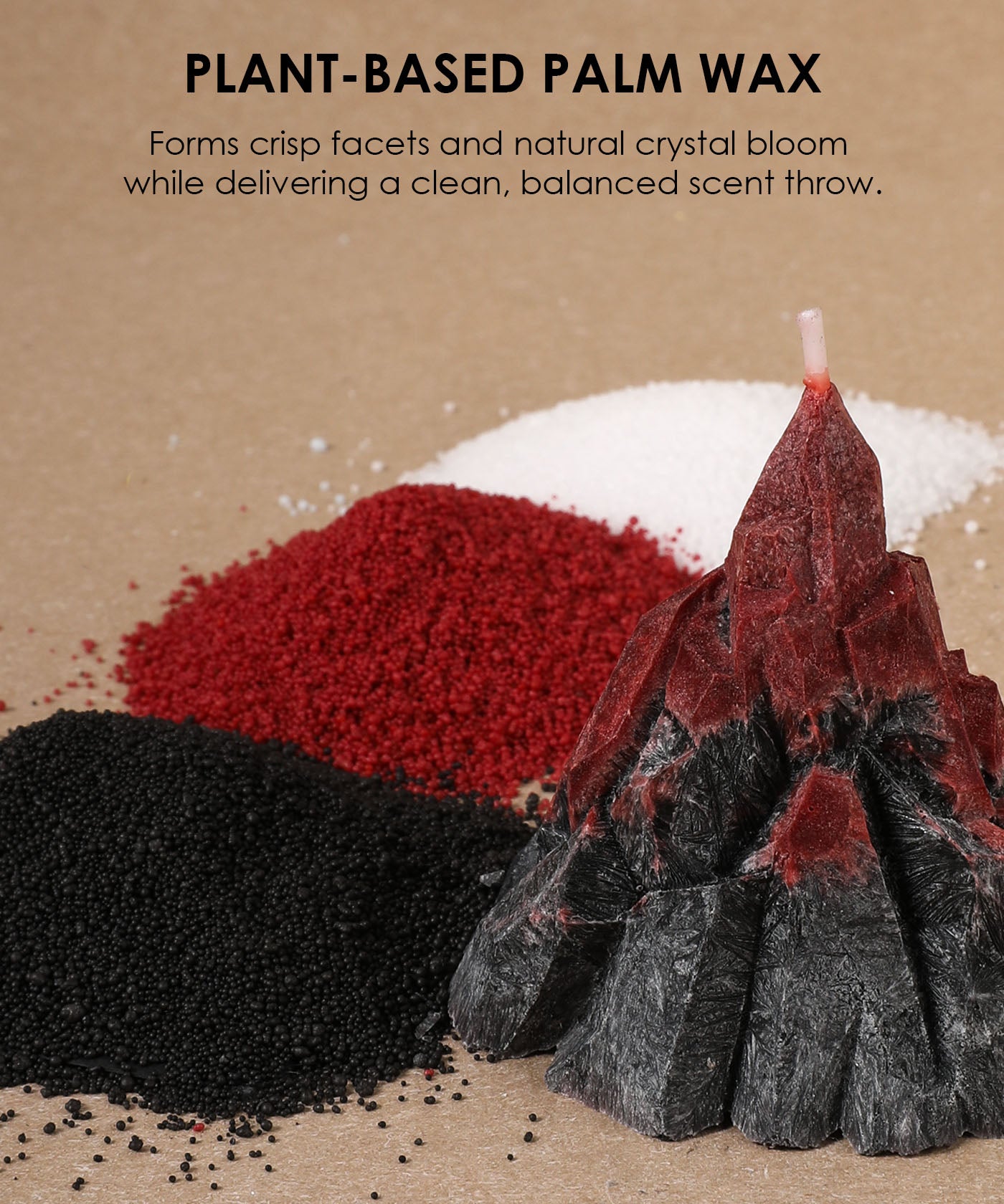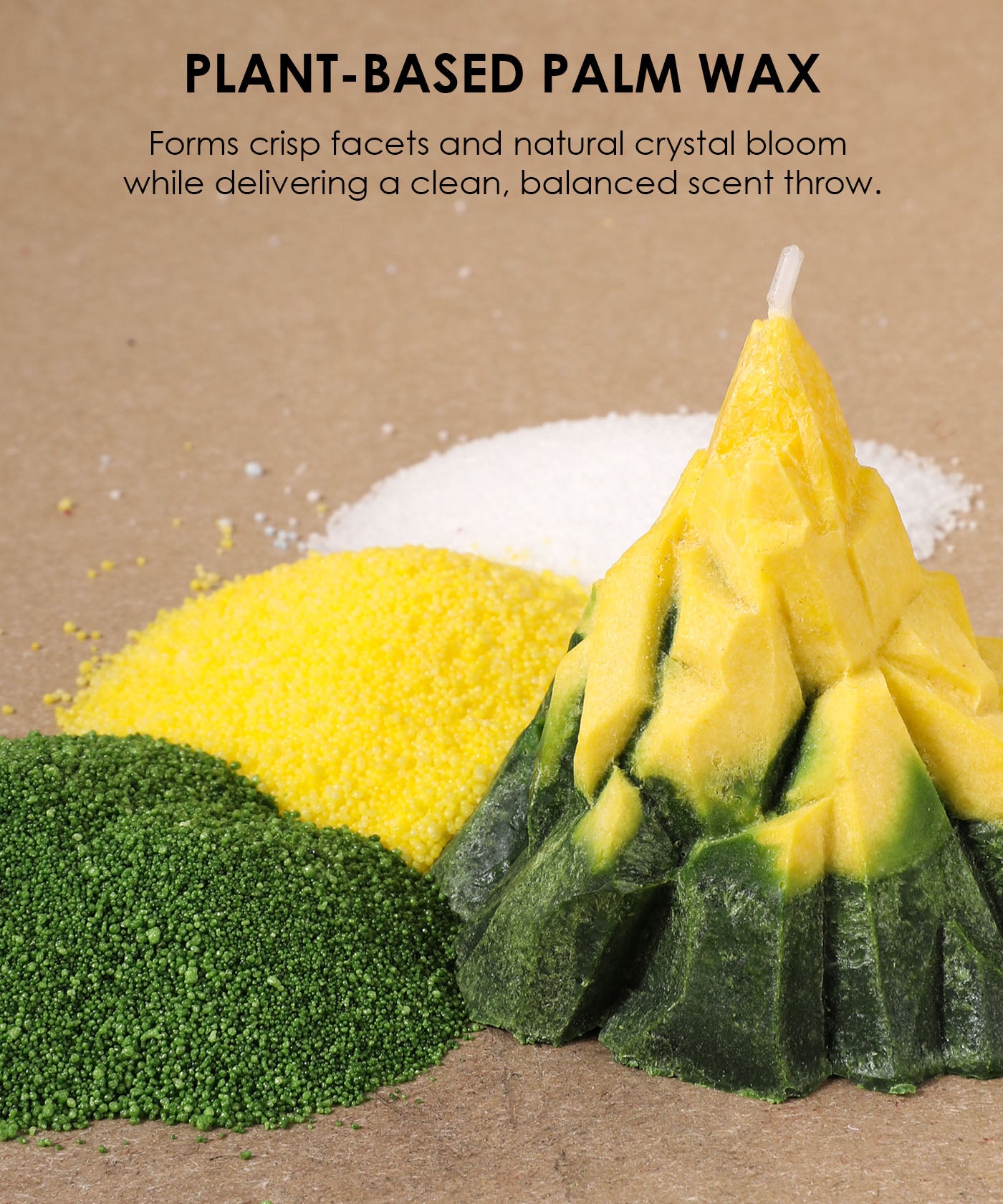 Our clean-burning plant-based wax is formulated to create sharp edges, natural grain lines, and delicate crystal bloom—giving the finished mountain a lifelike texture.