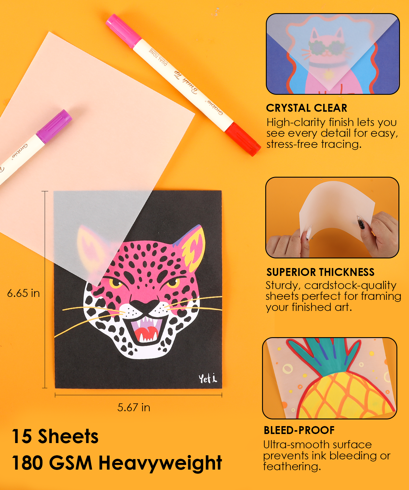 - PREMIUM 180GSM HEAVYWEIGHT VELLUM - Each book is crafted with high-quality, extra-thick vellum paper that provides a smooth, semi-translucent surface, ensuring your markers glide effortlessly without bleeding through.