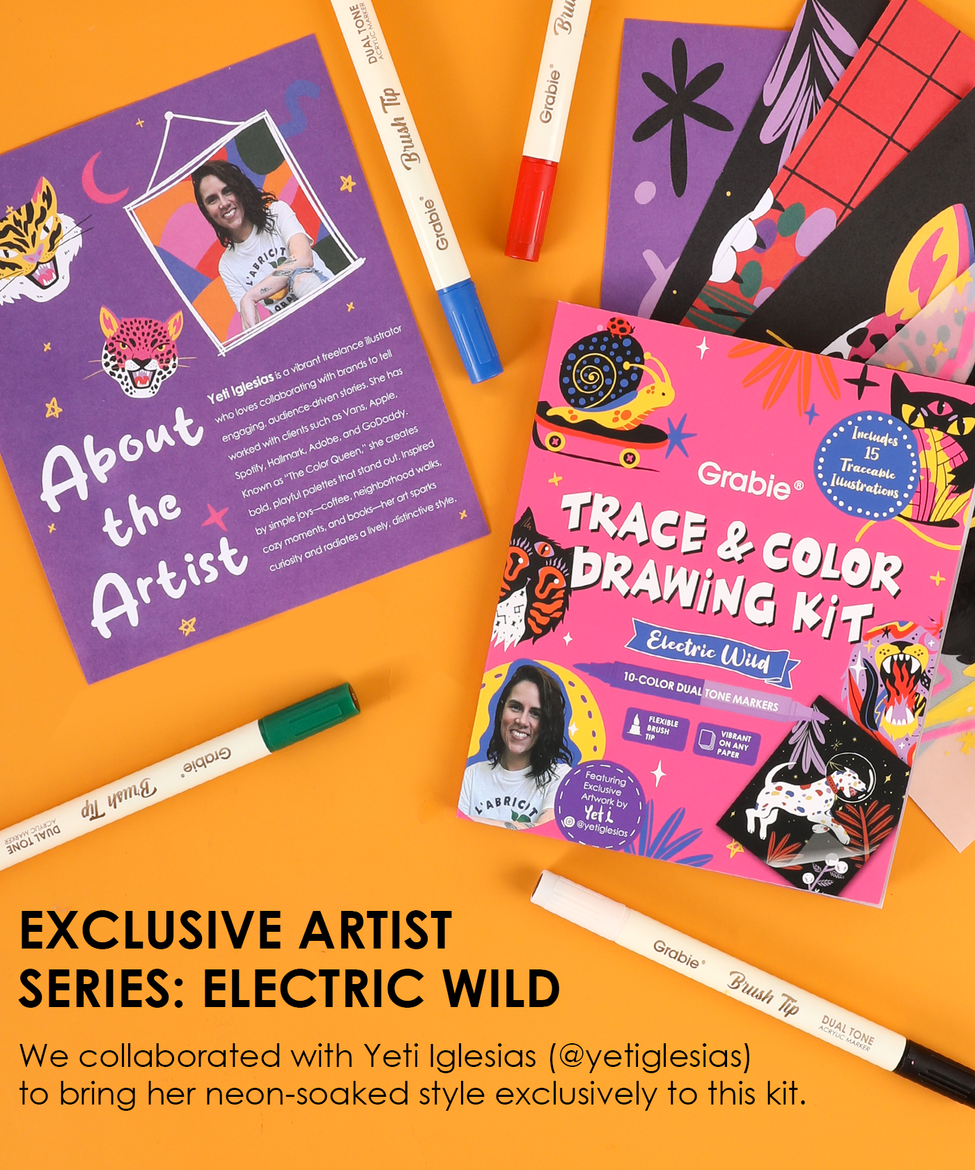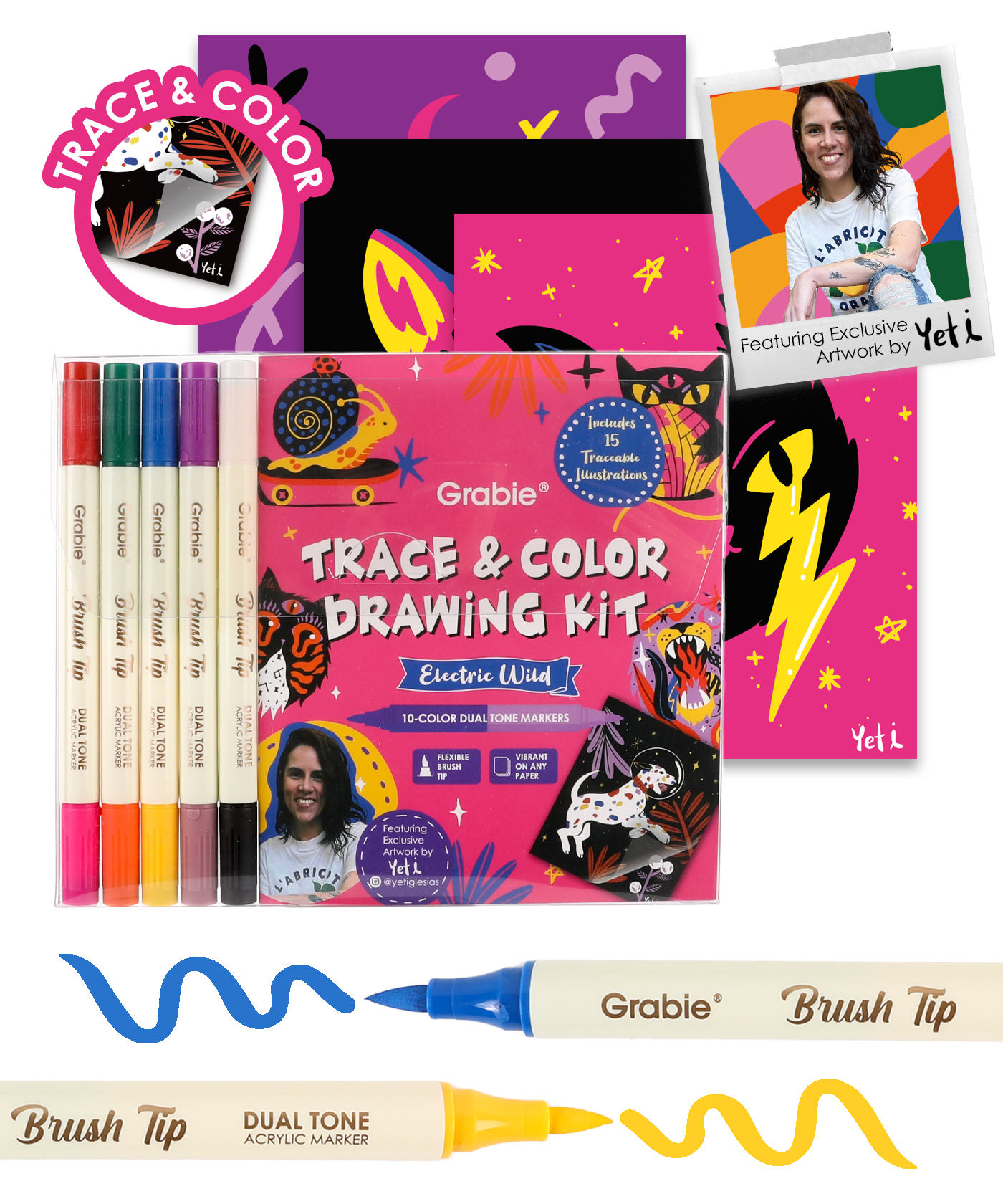 - ELECTRIC WILD X YETI IGLESIAS (ADVANCED CHALLENGE) - We partnered with vibrant illustrator Yeti Iglesias to bring you 15 exclusive, neon-soaked animal designs to trace and color; featuring intricate details and high-contrast patterns, this theme is perfect for users seeking a more advanced creative experience.